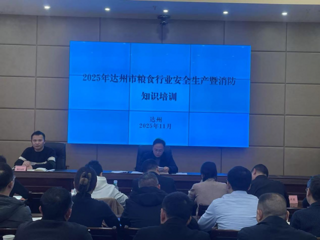 为深入贯彻落实习近平总书记关于安全生产的重要指示精神,牢固树立安全发展理念,全面提升全市粮食行业安全管理水平,11月21日,达州市成功组织召开2025年全市粮食行业安全生产暨消防知识培训会。市发展改革委党组成员、副主任符宋,相关科室人员,各区(市、县)粮食行政主管部门、质监站及政策性粮食承储企业负责人参加培训。